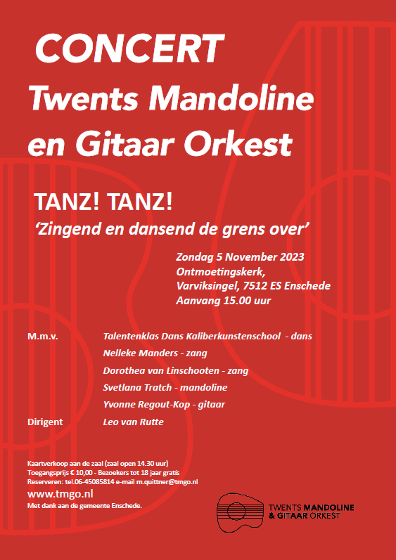 Op zondag 5 november gaf TMGO haar Jaarconcert in de Ontmoetingskerk, aan de Varviksingel, hoek J. Wagenaarstraat 6 in Enschede.