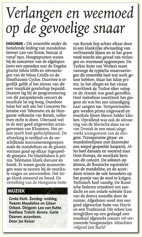 ‘Een concert dat naar meer smaakt’, Dagblad Tubantia